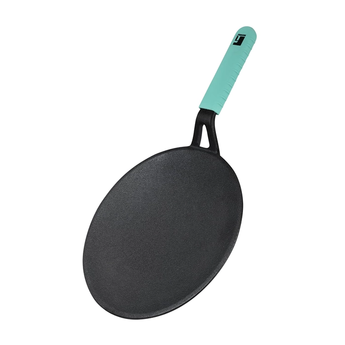 - Silicon handle cover: The cast iron Tawa comes with a silicon handle cover that makes it easy to safely move the hot tawa from stovetop to table.