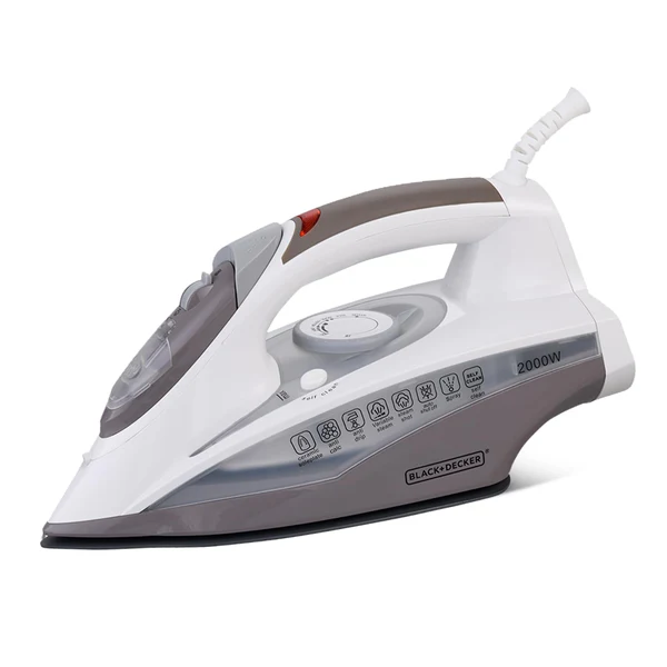 Black + Decker 2000W Steam Iron Press with Auto Shut Off | Grey + White |