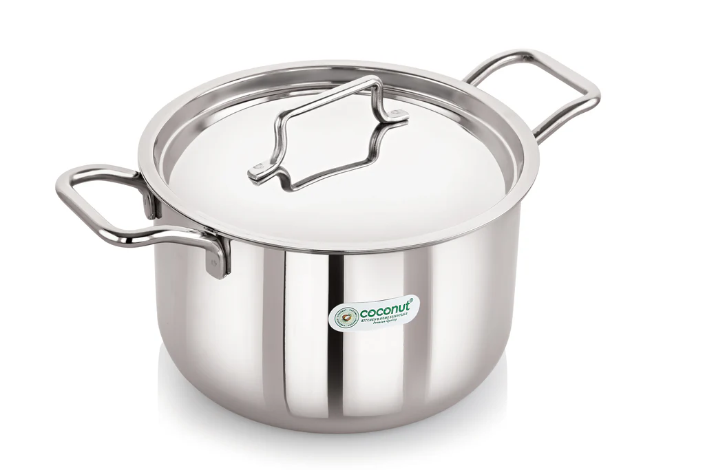 Coconut has introduced 18G Stockpot. Stockpot is crafted with Rust Free Stainless Steel. This Stockpot has adds Style to your Kitchen to look more beautiful and well decorated. This Stockpot with Lid can be used both on gas stoves as well as induction cooktop. This Stockpot is multipurpose. One can cook Vegetable. Rust Free, Premium Quality Stainless steel of heavy gauge. This Stockpot is strong, durable and convenient to clean and wash. Sure, to serve you well for a long time, this item is an ideal pick against your valuable currency. This Coconut stainless steel Stockpot is Multipurpose as one can cook daal, paneer, Vegetable etc. One will love to cook and serve in this. Coconut is a top brand in Home and Kitchen essentials. Coconut stainless Steel Neutron Stockpot wide size.