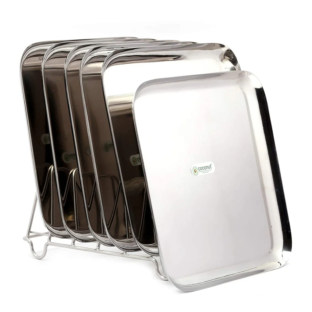 Coconut Stainless Square Steel Plate – Pack of 6, Heavy Gauge, Mirror Finish, Solid, Dinner Plate / Meal Plate / Serving Plate/ Thali, Model-P9 Square Plate Size7- (15.5cm wide) – pack of 6