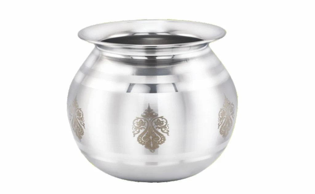 Coconut Stainless Steel – Antique Laser Design Rice Pot – 1 Unit | Ideal for Biryani, Milk, Water, Pulao, Food, Meal | Tope | Handi | Pongal Pot | Multipurpose cooking Handi | Pot | Model – Antique Rice Pot 2Litre