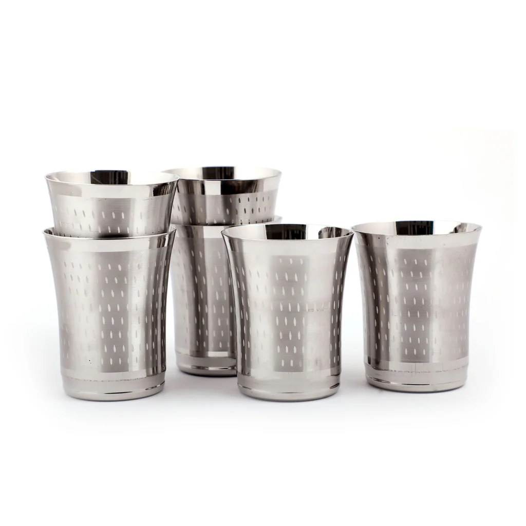 Coconut Stainless Steel Glasses – Capacity 300ml, Shower Finish, Heavy Gauge, Durable, Food Grade, BPA Free, Model – A19, Drinking Glass For Serving Water / Juice / Beverages Pack of 6pc