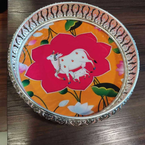 GS Pichwai Cow Plate Round Assorted 8 Inch