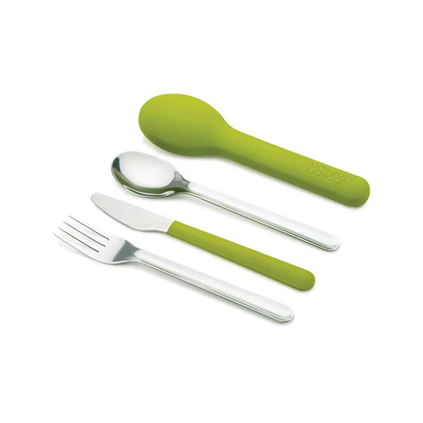 - The set includes a stainless steel knife, spoon, fork