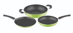 | Set Contains | Flat Tawa 255mm / Fry Pan 215mm / Kadai 215mm |