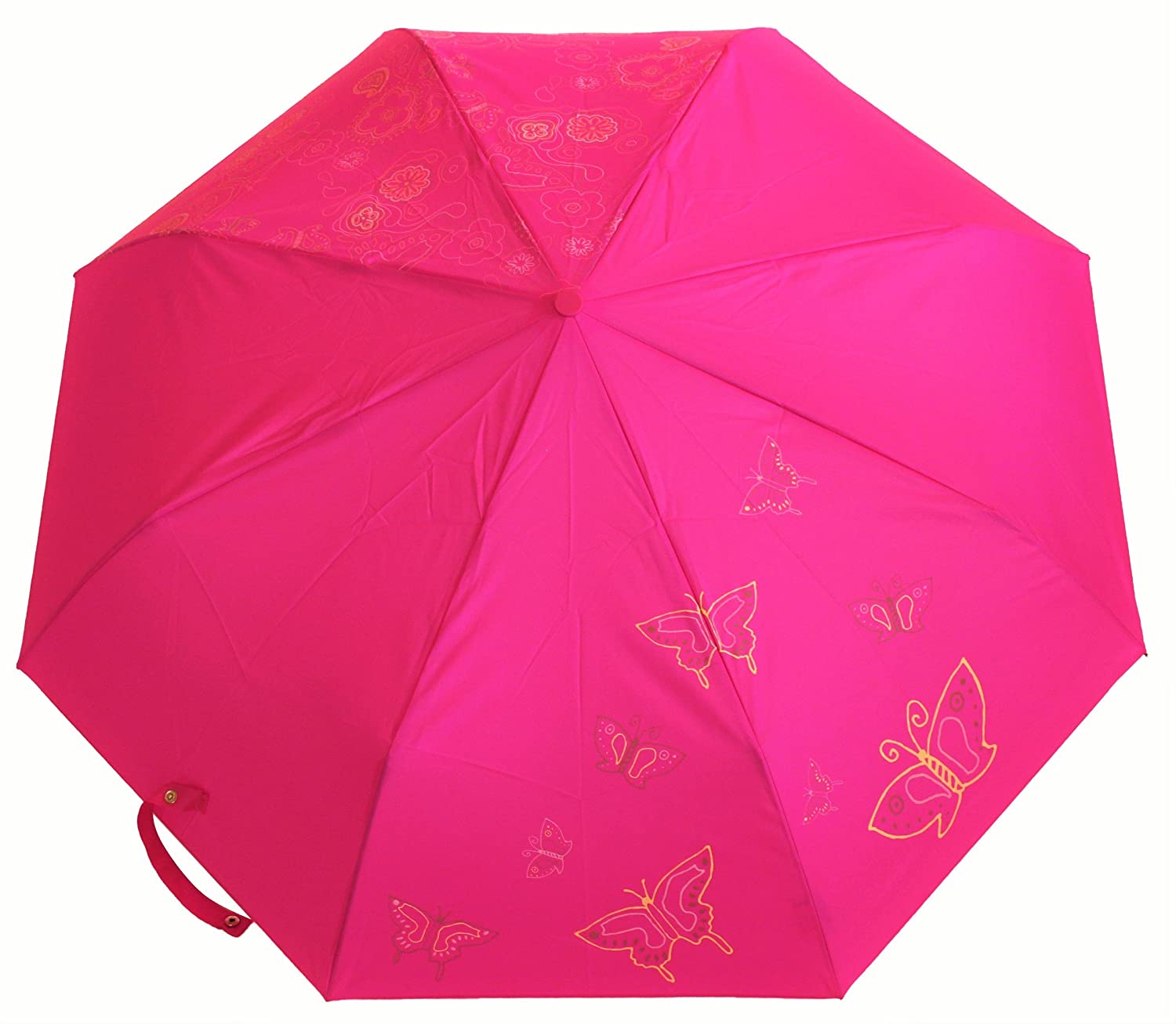 • Light Weight, Chic & Stylish Mono color Superior Nylon Canopy with beautiful butterfly print Auto opens/closes at the touch of a button