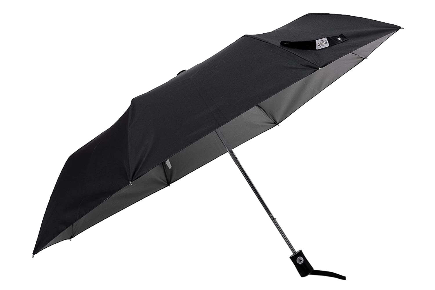 - Fabric – Ponjee Black Silver – fabric, UV Protective, Unisex Umbrella, Handle made of Virgin ABS.