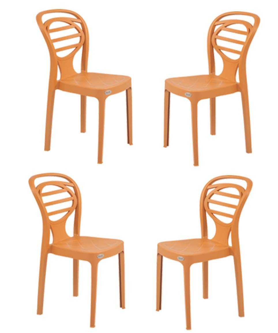 Supreme Oak Armless Plastic Chairs (Set of 4, Gold)