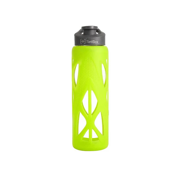- THE GLASS CONFIDENCE – TintBox water bottles are strong, durable yet light and travels in style to office, gym, workplace, car, camping, hiking, or wherever you go without hassles of leakage or breakage. High Borosilicate glass which is the best quality of glass possible imparts properties like crystal clarity, scratch proof and the glass itself is the most resistant to breakage amongst all types of glass unlike toughened / tempered or soda lime glass which are inferior qualities of glass.