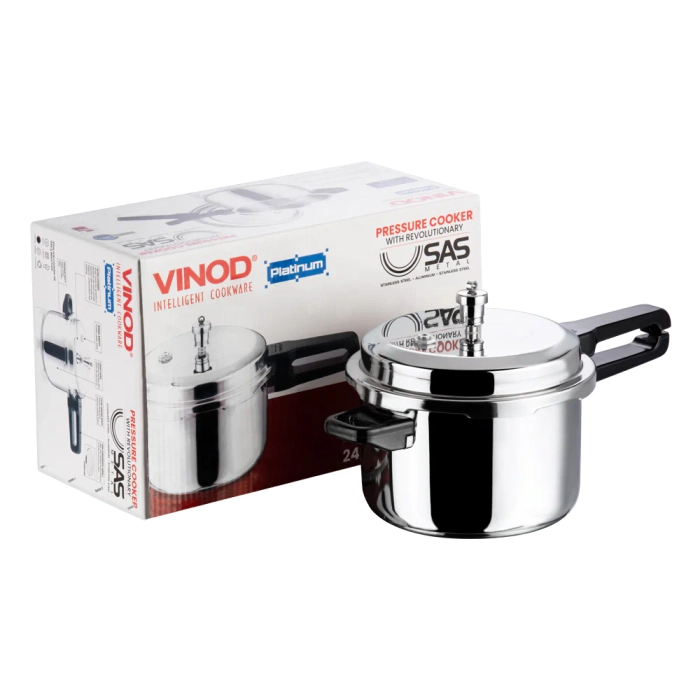 The Vinod Platinum Triply Stainless Steel Pressure Cooker is energy efficient for healthy nutritious cooking. The handles are easy to hold and comfortable for cooking. Wave goodbye to long hours in the kitchen this product can be used to cook dal, rice, khichdi, vegetables and meat dishes in minutes. Its inner surface with a perfect matt finish ensures no food particles get stuck and does not impact the color, taste or odor to the food. What is more, acidic foods like tamarind or tomatoes will never corrode stainless steel ensuring contamination free cooking.